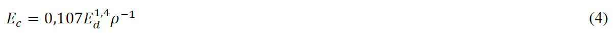 where E c is the static modulus of elasticity (in Pa), ρ is density (in kg/m³), and E d is the dynamic modulus of elasticity (in Pa).