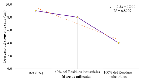Según Cipriano et al., (2021) y Silva et al., (2021) el aumento de la relación (a/c) se debe a la necesidad de mantener la trabajabilidad del material, y este hecho puede atribuirse a la mayor absorción de agua de los áridos reciclados, lo que implica la migración de agua a los áridos, reduciendo la cantidad de agua que contribuye a la trabajabilidad del hormigón. Una forma de dar mayor trabajabilidad al hormigón con árido reciclado, manteniendo la relación (a/c) constante e igual a la del hormigón convencional, es mediante el uso de aditivos superplastificantes.