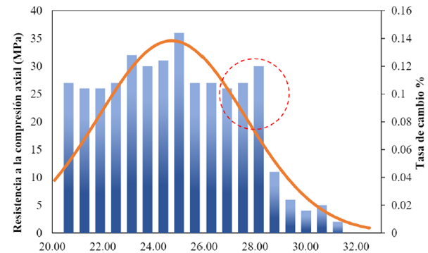 Tabla 4. Análisis estadístico de los datos de resistencia a la compresión axial a los 28 días de curado.