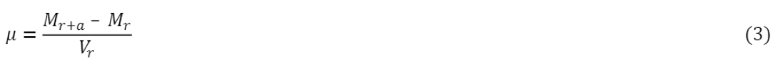 Debido a la falta del tipo de matraz requerido para realizar el ensayo según la NBR NM 52 (ABNT, 2009), como medio alternativo para analizar las masas específicas de los agregados finos, se utilizó el matraz Chapman, según la NBR 9776 (ABNT, 1987), con la masa específica: “la relación entre la masa del agregado secado al horno (100 °C a 110 °C) hasta la constancia de la masa y el volumen igual del sólido, incluidos los poros impermeables”. Los materiales se sometieron al ensayo después de 24 horas en el horno a 110 ºC. Luego de la lectura de los resultados, se aplicó la fórmula (Ecuación 2) que rige la norma para obtener las masas específicas.