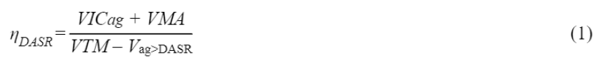 Donde ηDASR coincide con la porosidad DASR (%); VICag es el volumen de agregados más pequeños que DASR; VAM son los vacíos del agregado mineral; VTM es el volumen total de la mezcla; Vag>DASR es el volumen de agregados mayor que el DASR.