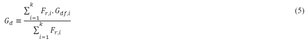 Por último, tras obtener el grado de deterioro de cada familia (Gdf), se calcula el grado de deterioro de la estructura (Gd). La ecuación utilizada para este cálculo se expresa a continuación, ecuación (5).