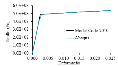 Os modelos constitutivos empregados aos materiais, concreto e aço, foram extraídos do código europeu CEB-FIB (2010). Assim, o intuito principal desta etapa é a reprodução do comportamento mecânico do concreto armado, de sua curva tensão x deformação, incluindo a influência da aplicação de um modelo de dano.