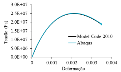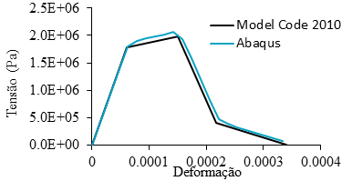 O modelo constitutivo utilizado no concreto caracteriza o seu comportamento frente solicitações de compressão (Figura 2), e tração (Figura 3 e Figura 4).