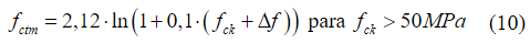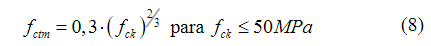 A resistência à tração axial do concreto (f ctm ) foi definida através da Equação (8) e Equação (9), de acordo com o seu f ck .