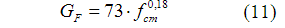 A Equação (4) foi utilizada para determinar o módulo de elasticidade do concreto aos 28 dias (E ci ), que depende do módulo de elasticidade tangente inicial (E c0 ), do parâmetro em função da natureza do agregado (α E ) e do valor padronizado (∆ f ), definidos por consulta ao CEB-FIB (2010).