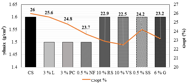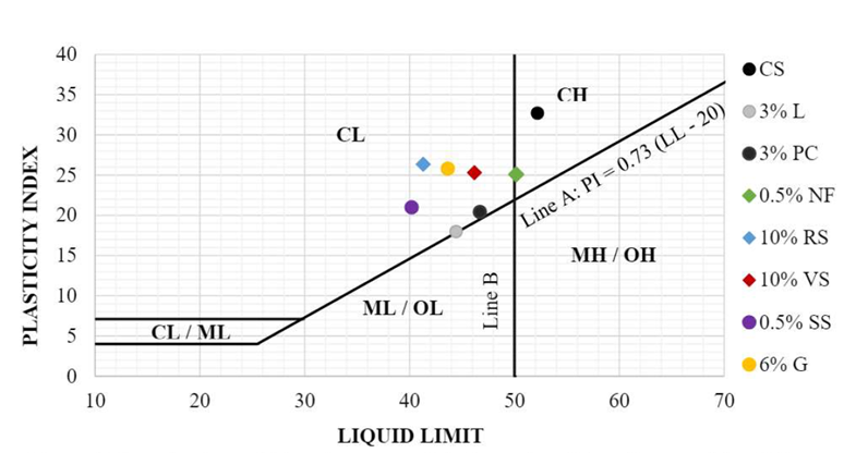 Table 5. Index properties of the original soil and the mixtures with different stabilizers.