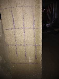 The taking of samples of fresh concrete for the preparation of the concrete probes was carried out directly in the construction site in accordance with the Cuban Standard. (NC 167, 2002). The concrete probes were kept under curing in a pool for 28 days and later tested by breaking in a concrete press. The average fc result issued by the laboratory was 27.0 MPa. This will be the reference value for comparison with the results obtained by the different SonReb methods used.