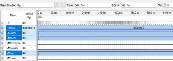 | Prueba | Δ(cm) | Pertenece | SAAalerta | SAV verde | SAV amarillo | SAV rojo | SAM precaucion | SAM alerta | ||||||