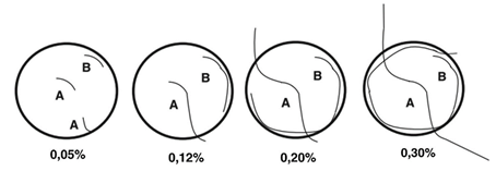 Grupo II: fisuras abiertas (apertura ≥ 0,1 mm) en las partículas de árido grueso o en la fracción gruesa de