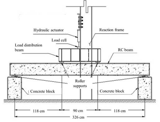 Control beams and beams with corrosion were subjected to incremental vertical loads until failure. Beams were tested after the period of application of the corrosion technique. Loads were applied using the same four-point load system described before (Figure 1). Loads were applied using a hydraulic actuator and were measured with a load cell. Vertical displacements at the mid-length of beams were measured using two linear potentiometers. Strains of the longitudinal steel reinforcement were measured using strain-gages. The strain-gages were attached to the longitudinal steel reinforcement prior to pouring of concrete (Moreno-Herrera et al., 2022).