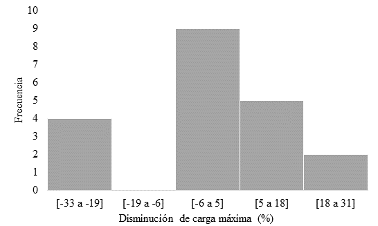 | Figura 2. Histograma de variación de carga máxima. | ||||
