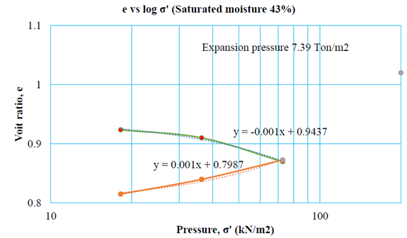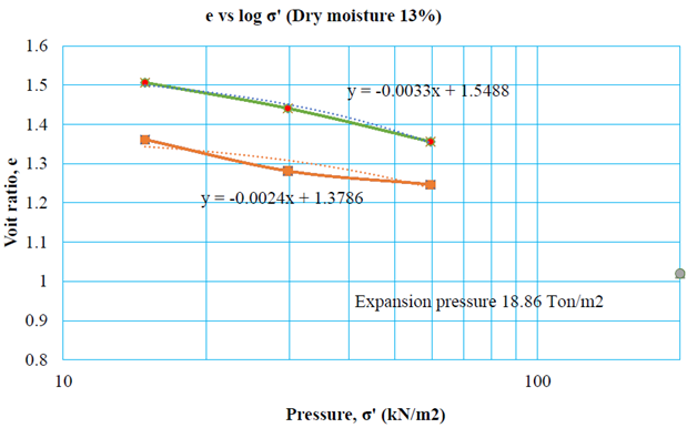 On the other hand, the expansion pressure is lower when the land has a high water content than, considering Figure 16 where the volumetric change will be equally lower, so these two terms are related to each other.