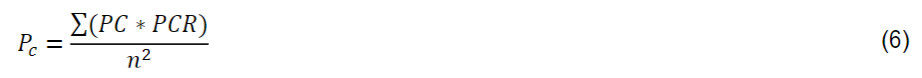 Donde PC es el número total de píxeles clasificados en cada clase, PCR es el número total de píxeles en la clase real y n² es el cuadrado del total de píxeles.
