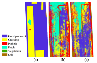 The classification of samples by polygons showed few regions in agreement with the actual surface condition of the pavement, as shown in Fig. 5. In addition, it resulted in different classifications for most of the selected image elements.