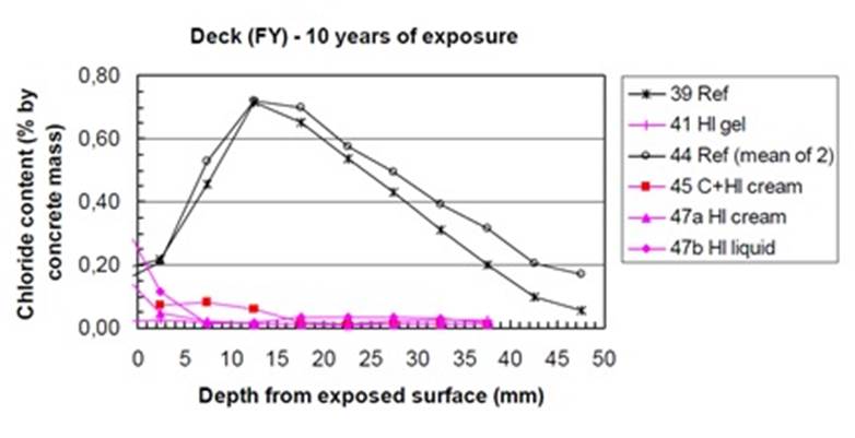 However, there are some positive results for the use of these inhibitors in chloride induced corrosion - the SAMARIS project also presents one of them - Fleet Flood Bridge, where the inhibitor was successfully used to address the issue of incipient anode corrosion.