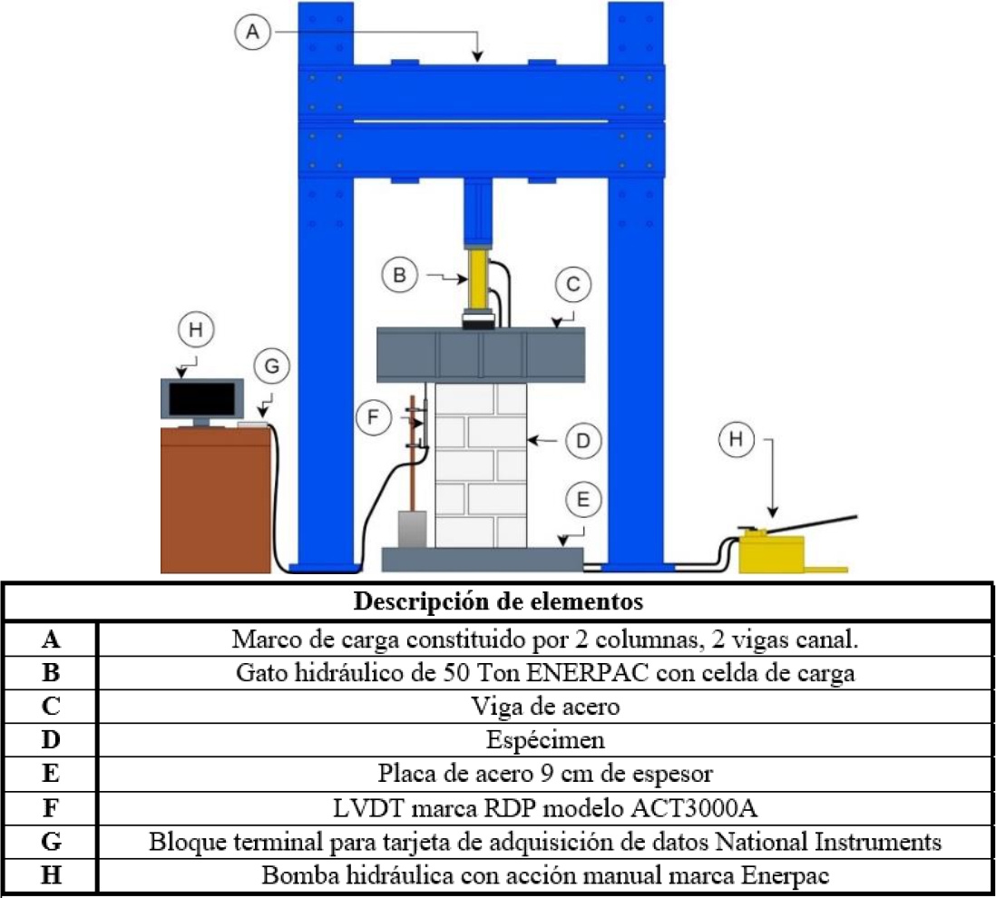 1) Preparación de los especímenes en el laboratorio. Como parte del proyecto en el que se desarrolló esta investigación, se establecieron 3 etapas fundamentales: (i) caracterización de los materiales (bloques y mortero) según las normas (NMX-C-036-ONNCCE-2013, 2013; NMX-C-061-ONNCCE-2015, 2015), (ii) construcción de los especímenes, y (iii) ensayo de los especímenes a compresión según la normativa europea (Eurocode-6, 2005).