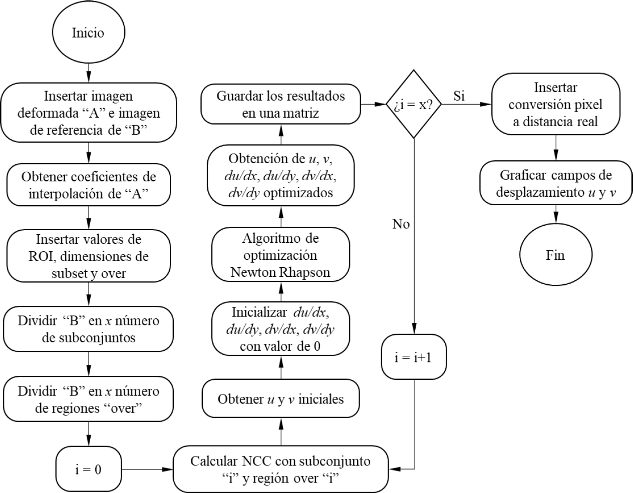 Figura 5. Diagrama de flujo del algoritmo elaborado para la aplicación de la técnica del DIC (Valencia-Guzmán, 2021)