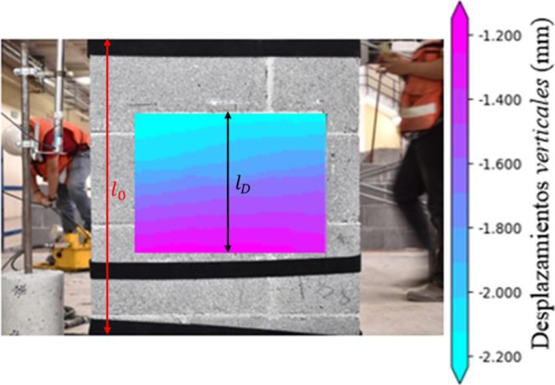 El método de 2D DIC fue aplicado por (Allaoui et al., 2018) para medir el comportamiento a compresión de un prisma de dos hileras de ladrillo. Los autores emplearon el software de correlación 7D y una cámara comercial con un dispositivo de carga acoplada (CCD). En esta investigación, referente al DIC, se delimitó y optimizó el tamaño de las cuadriculas en la junta de mortero para lograr el correcto procesamiento de las imágenes.