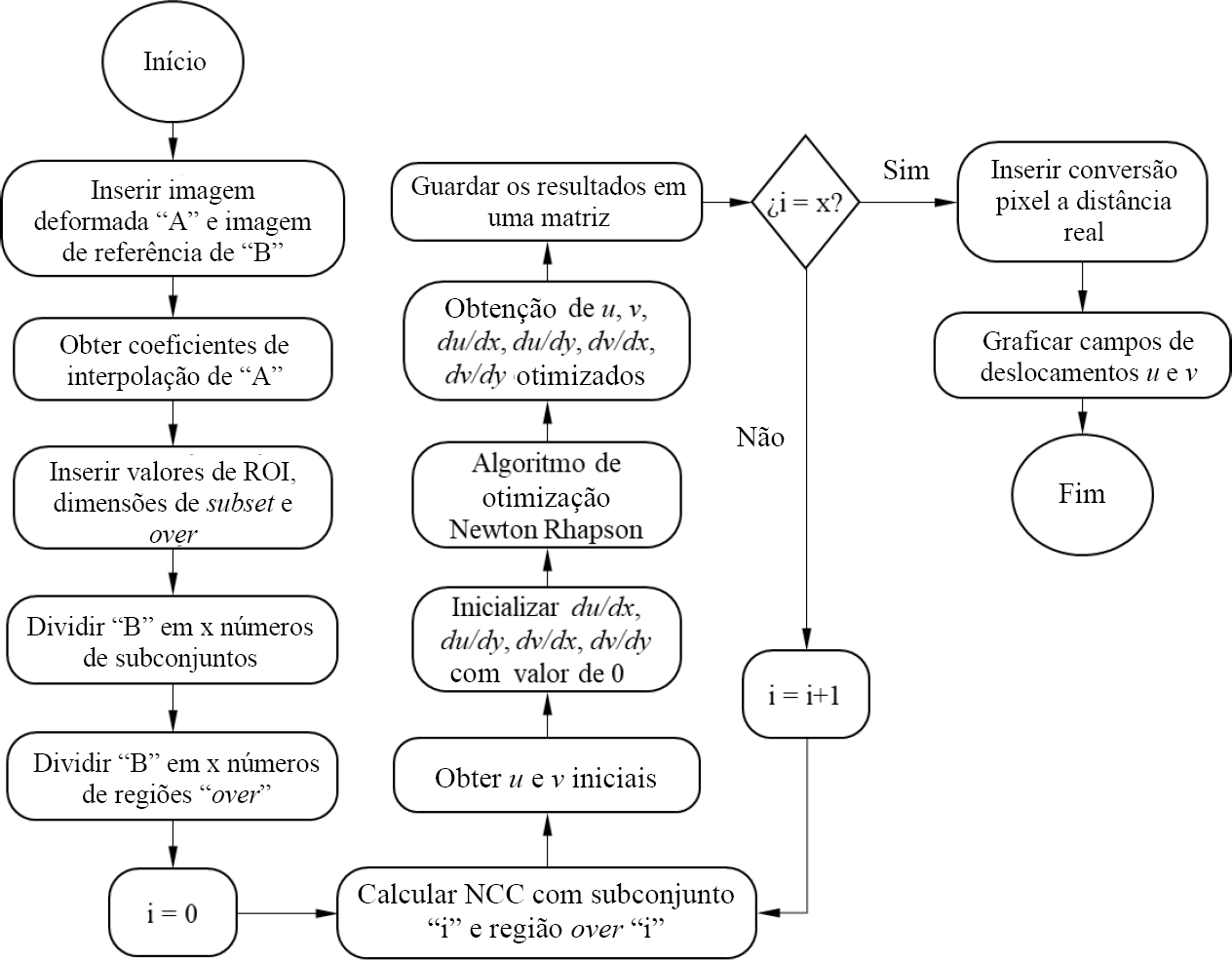 Figura 5. Diagrama de fluxo do algoritmo desenvolvido para aplicação da técnica DIC (Valencia-Guzmán, 2021)