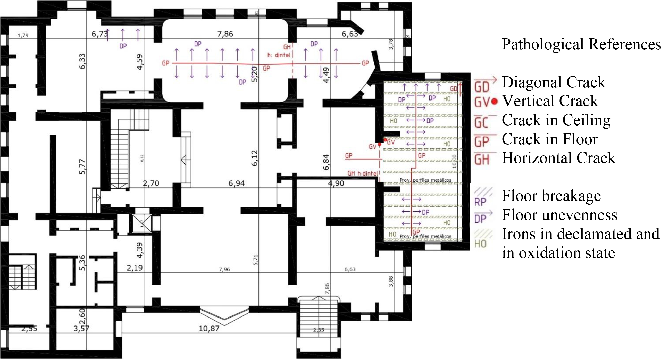 Figure 3. Pathology survey at ground floor level.