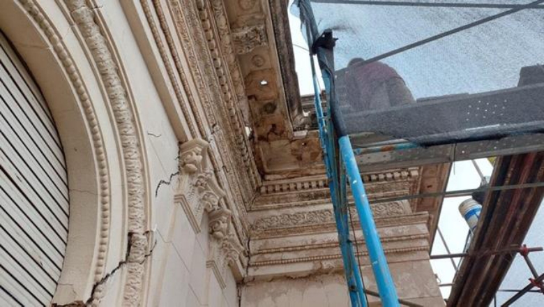 Silty soils of loessic origin have a macroporous structure and undergo large variations in volume, called collapse, when the moisture content or stress state increases. In general, it can be stated that the tensile-deformational behavior of the Argentine loess is highly dependent on the moisture content of the soil, with a significant drop in the elastic modulus being observed when complete saturation occurs. This behavior can be attributed to the fact that increasing the moisture content of the soil, the hydration of the clay bridges and the salts precipitated at the contacts between larger particles produce the collapse of the structure and softening of the soil skeleton. As a consequence, this weakening of particle contacts is evident, at the macro scale, with an increase in vertical ground deformations (even under constant load) (Francisca, 2007). Consequently, civil constructions and architectural buildings, supported or founded on these soils, suffer significant damages. The magnitude of the damage increases with the level of the loads transmitted to the ground and with the structural typology of the construction. Figures 6 to 9 show some of the structural damage detected and surveyed at Tampieri Palace.