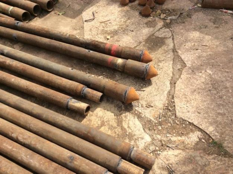 Figure 10. Focus on the Manessmann tubes with a diameter of 73 mm. Injection drilling and driving azuches are observed without vibration transmission to the surrounding soil.
