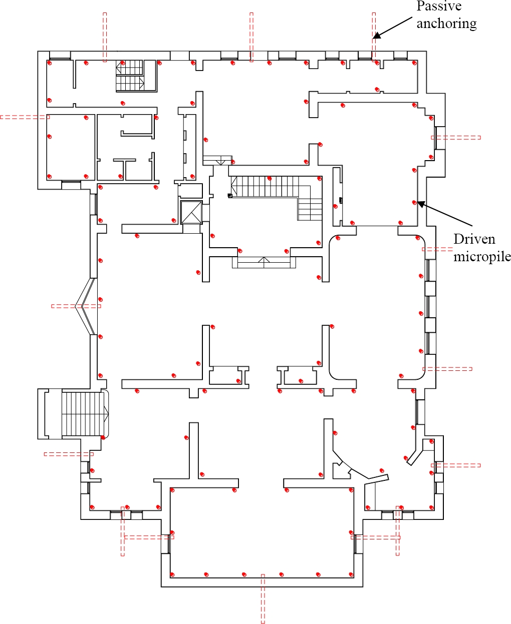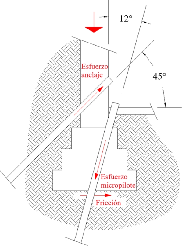 Figure 11. Diagram of support of interior walls in sub-vertical micropiles.