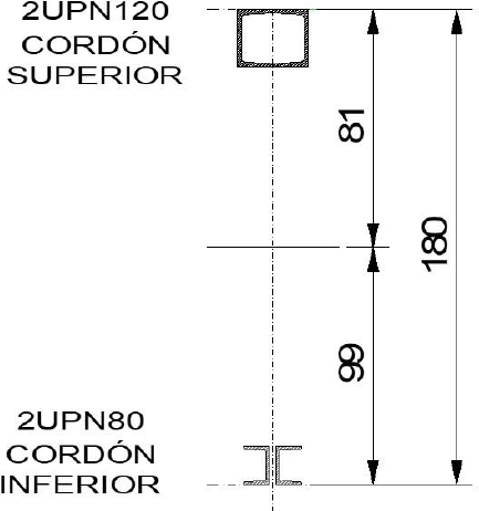 Como enunció precedentemente, el cordón superior se ejecutó mediante la sección cajón conformada por dos UNP 120. Los datos necesarios para su verificación de resistencia pueden verse en la tabla 2.