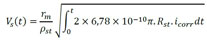 where Rst is the initial radius of the reinforcement (in m), α is the ratio of steel density of steel to the corrosion products density, ρst the steel density (in kg/m³), rm the ratio of iron mass to the molecular mass of corrosion products, t (in s) is the time parameter, measured from the instant the reinforcement is depassivated and icorr the natural corrosion current density (in A/m²), given by (11).