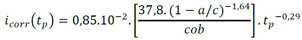 where a/c is the concrete water/cement ratio, tp is the corrosion progression time, after the reinforcement is depassivated (in years), and cob is the thickness of concrete cover (in cm).