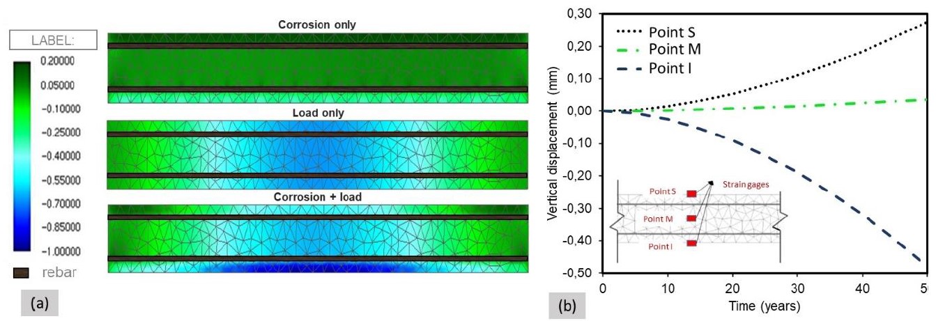 | Figure 14. (a) Vertical beam displacement: (a) for 50 years e (b) at the time (mm). | ||||