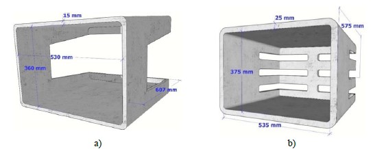 | Figura 3. Suporte de concreto armado, tipo janela: a) modelo aberto; b) modelo fechado | ||||