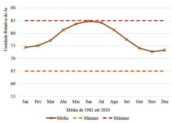 | Figura 7. Variação da Umidade Relativa do Ar (1981-2010), fonte: INMET | ||||