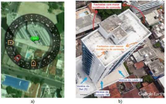 | Figura 8. Direção dos ventos em edificação: a) direção dos ventos no ano; b) ventos na edificação | ||||