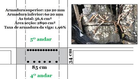 Ainda no trecho de pilar coletado, encontrou-se a intersecção pilar-laje, e sua armadura evidente. Portanto, foi possível determinar a disposição das armaduras na viga faixa que suportava a laje (Figura 12).