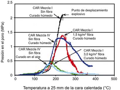 En sus experimentos, Phan (2002) observó que se puede concebir una alternativa para minimizar los efectos de la formación de presión interna sobre el concreto mediante la introducción de fibras de polipropileno en mezclas de concreto, donde este hecho se ha demostrado en una extensa investigación que involucra probetas de concreto de alta resistencia. Fue posible caracterizar el comportamiento del concreto de alta resistencia con respecto a los aspectos de formación de presión interna, siendo considerado equivalente al concreto de resistencia normal cuando a altas temperaturas, simplemente por la introducción de fibras de polipropileno.