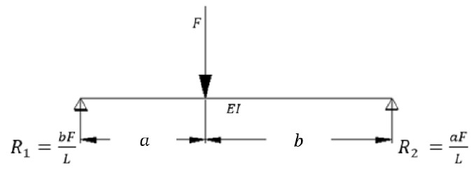 Once the displacement is known, the stiffness is obtained in the coordinate x = a; considering b = L-a, where (6) is the stiffness invariant applied for beams and (7) the invariant for solid slabs.
