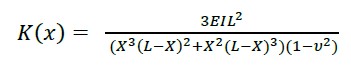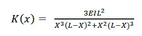 It is formed with the stiffness values below the limit of proportionality along the length of a structural element. In (3) K, corresponds to the theoretical design stiffness value, F corresponds to the applied force and δ is the resulting displacement.