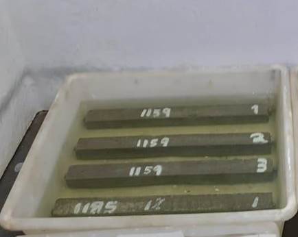 | Figura 3. Probetas de mortero sumergidas en solución de NaOH para el cumplimiento de los ensayos de expansión. | ||||