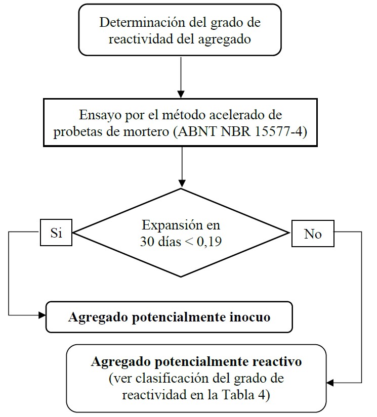 | Figura 5. Procedimiento para determinación del grado de reactividad del agregado según lo establecido en NBR 15577-1 (ABNT, 2018). | ||||