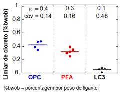 Limiar de cloreto de sistemas sem e com SCMs (μ: média, cov: coeficiente de variação)