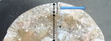 Paso 3 - Medir la profundidad de penetración de los cloruros con una regla o un calibrador de precisión. Considerar valores promedios, mínimos y máximos para interpretar los resultados de profundidad de penetración de cloruro.