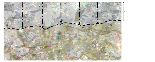 | Figura 1. Medida de la profundidad de penetración de cloruros por el método colorimétrico visual por aspersión de la solución acuosa de AgNO3 0,1 M. | ||||