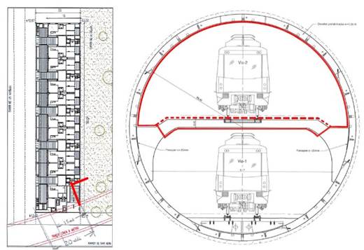 Será efetuada o monitoramento de um tramo de túnel, o que envolve, até a data, o controle da estrutura em serviço durante os oito meses (outubro 2018 - maio 2019) que abrangem as obras de construção da estrutura de um edifício na via, até o nível do 1º andar, na área de construção acima do túnel.