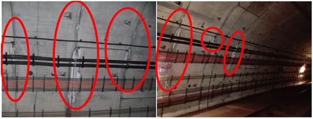 En la Figura 11 se visualiza el procedimiento de adherencia realizado con la fibra óptica en la losa del carril de circulación de la vía 2 y en la bóveda del túnel.