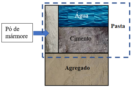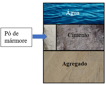 O pó de mármore possui alto teor de Carbonato de Cálcio (CaCO3), que pode ser adicionado a argamassas e concretos à base de cimento Portland para aumentar a vida útil, funcionando como preenchedor de poros (Singh et al. (2017).