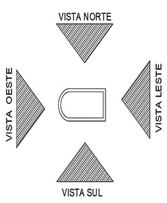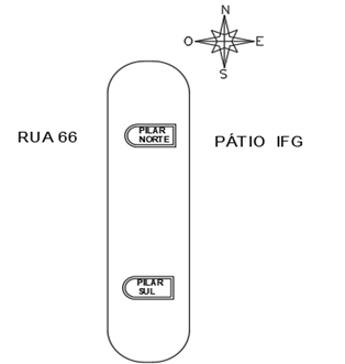 Para a realização da inspeção nomeou-se o os pilares do Pórtico como Norte e Sul (baseando-se na orientação da rosa dos ventos) conforme mostrado na Figura 5. Cada pilar teve também suas faces identificadas como Norte, Sul, Leste e Oeste como é indicado pela Figura 6.