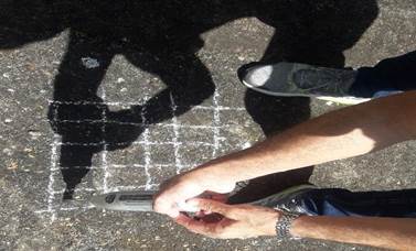O ensaio de esclerometria foi executado em quatro regiões da laje. Buscaram-se locais em que não havia segregação do concreto e apresentassem superfícies homogêneas e regulares. Na Figura 7 é mostrada a execução do ensaio e na Figura 8 tem-se a ilustração da localização das áreas ensaiadas juntamente com suas dimensões.