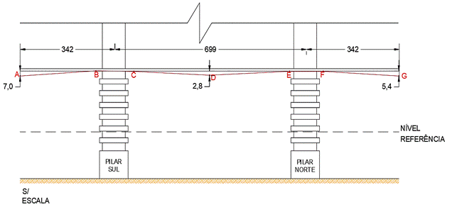 A verificação da flecha foi executada colhendo-se as cotas a partir de um nível referencial de 2,0 metros nos pontos presentes na Tabela 1.